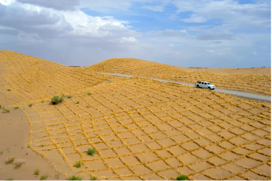 △建设期光伏厂区草方格铺设“新路子”走出“好日子”
